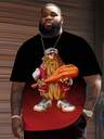 ZhuYa 时尚“街头涂鸦图案&耶稣符号印花”加大码男士连帽衫套装,休闲运动两件套,适合春、秋、冬季穿着 - 加大码宽松街头风连帽卫衣+慢跑裤