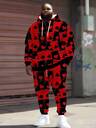 ZhuYa“酷炫水手全身印花”撞色加大码男士连帽运动服套装,适合春秋季,加大码宽松连帽运动衫+慢跑裤,街头休闲装,舒适装